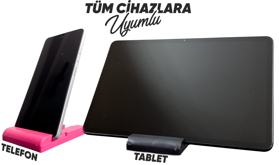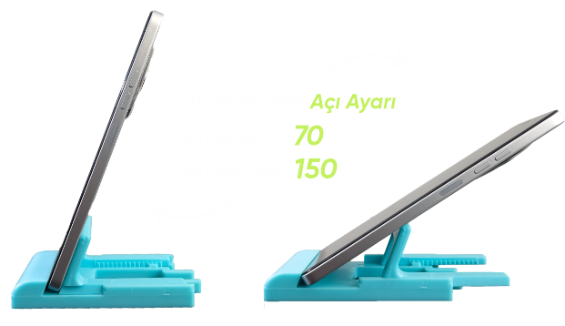 Karizmatik Telefon Tutucu, açı ayarlanabilir yapısı ile uzun toplantılar, online dersler ve dizi/film izleme sırasında boyun ve bilek konforu sağlar. Telefon veya tablette cihazı en dik konuma getirip okuma/yazma için dikey kullanabilir, en geniş yatış açısında video izlerken yansımayı ve yorgunluğu azaltırsın. Kızaklı-tırnaklı kilit sistemi, sık kullanımda bile seçtiğin pozisyonu güvenle korur.
